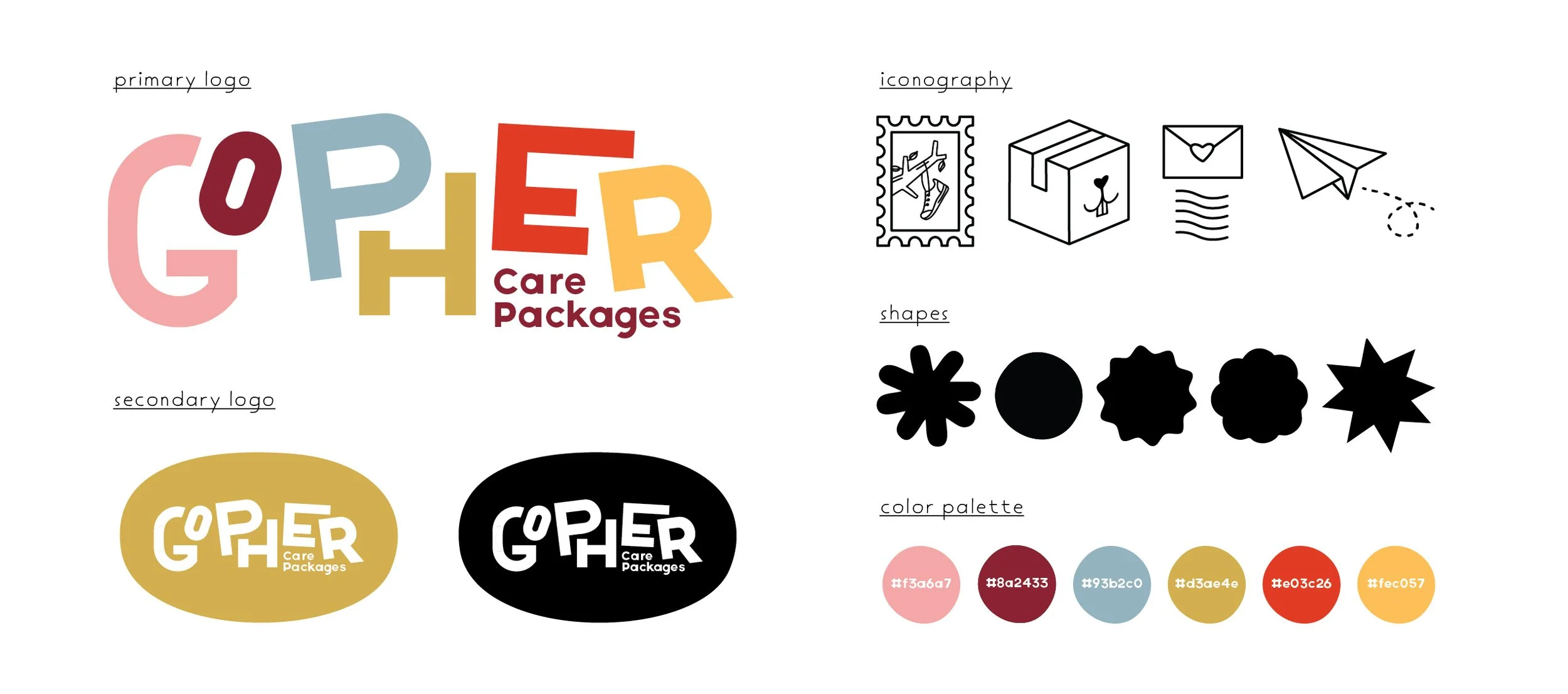 Develop a new logo and brand guidelines for SUA’s care package program with the goal of creating a fun, approachable look which stands out from other University brands and materials.